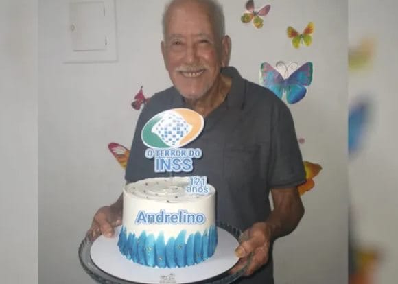 O aposentado Andrelino Vieira da Silva, que ficou conhecido após viralizar na internet como “Terror do INSS”, completou 123 anos de idade no último sábado (3), em Aparecida de Goiânia (GO). Segundo a família, o idoso continua bem de saúde e disposto.