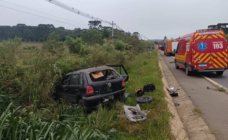 Segundo informações do Corpo de Bombeiros de Canoinhas, o condutor de um veículo Volkswagen Gol, com placas de Porto União-SC, perdeu o controle da direção, saiu da pista e foi parar às margens da rodovia, na localidade de Rio Pretinho.