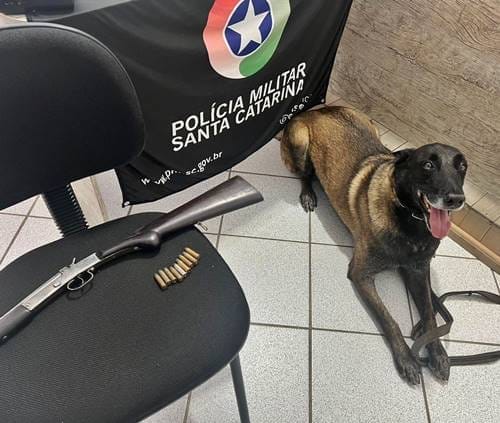 Na manhã desta segunda-feira (18), o Canil do 3º BPM prestou apoio à operação da Polícia Militar Ambiental (PMA), onde o cão Hórus desempenhou um papel crucial na localização de uma espingarda calibre .40 sem numeração, e 10 munições, escondidas no forro da estufa de fumo de uma das casas alvos de mandado.