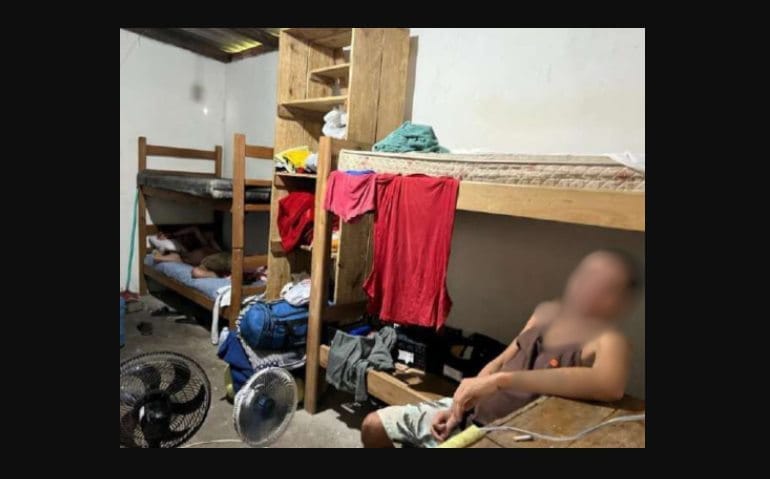 Conforme o relato, a porta do cômodo ficava trancada e do lado de fora um monitor vigiava a saída. Eles contaram, ainda, que faziam todas as refeições dentro do quarto, dividiam um banheiro e eram constantemente agredidos.