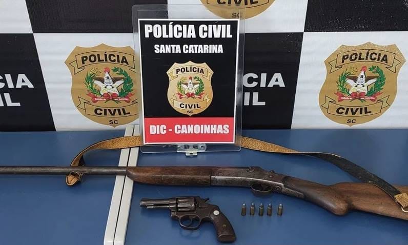Deferida a medida, as equipes policiais se deslocaram ao interior do município e localizaram, na residência do alvo, uma espingarda e um revólver calibre .32 municiado com 5 munições do mesmo calibre.