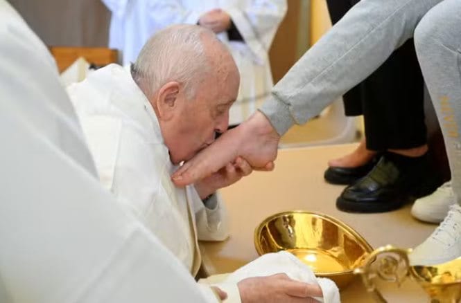 Ele é o primeiro Papa a realizar a cerimônia do lava-pés fora das igrejas, geralmente, em prisões, lares de idosos ou hospícios, como fazia quando era arcebispo de Buenos Aires. Francisco afirmou que a cerimônia do lava pés “é um gesto que nos chama a servir aos demais”.