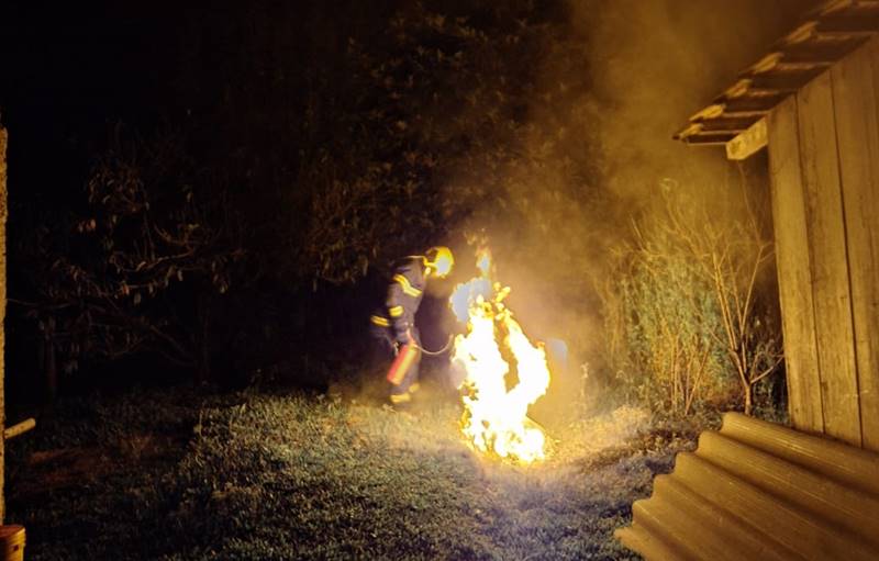 Os bombeiros utilizaram um extintor PQS (pó químico seco) para extinguir o fogo. Em seguida, a família foi orientada sobre os riscos do uso inadequado de gás e sobre a importância de construir um abrigo de gás no exterior da edificação para maior segurança.