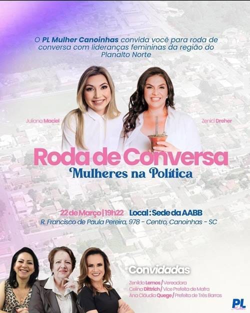 No mês em que se celebra o Dia Internacional da Mulher, Canoinhas sedia um encontro sobre a importância da participação feminina na política e nos espaços decisórios. O evento, aberto ao público, é organizado pelo Partido Liberal (PL) de Canoinhas e acontece nesta sexta-feira, 22 de março, às 19h22, na sede da AABB.
