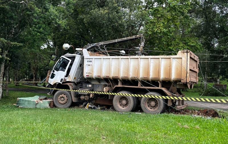 Um caminhão da Secretaria de Obras da Prefeitura de Canoinhas se envolveu em um acidente na manhã desta sexta-feira, 1º, no Parque de Exposições Ouro Verde, resultando apenas em danos materiais.