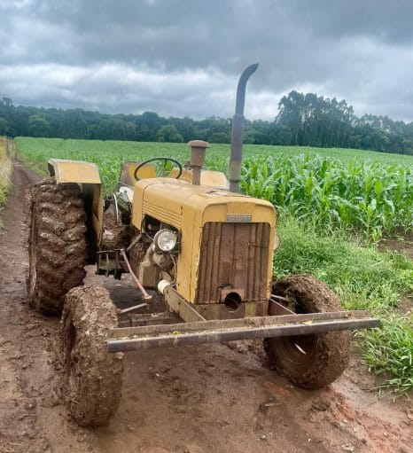 A Guarnição deslocou sentido Erval Bonito, adentrando em uma propriedade agrícola de mata fechada, logrando êxito na localização do trator, marca Valmet, de cor amarela, modelo 65, ano 1976 que estava de posse de um homem.