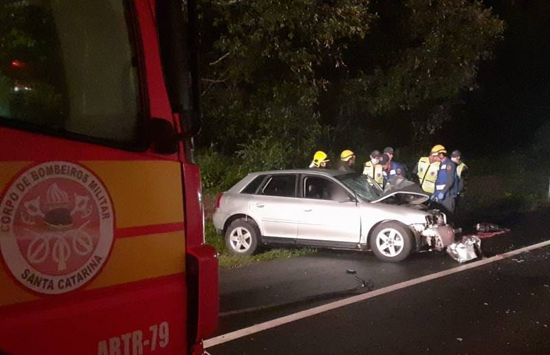 As guarnições dos bombeiros de Canoinhas e Três Barras foram acionadas por volta das 19h56 para atender a ocorrência. No local, foi confirmada a colisão frontal entre um Audi A3, de cor prata, com placas de São Bento do Sul, e um Mercedes-Benz/L 1113, de cor amarela, com placas de Três Barras.