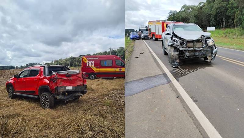 No início da tarde desta sexta-feira (12), por volta das 12h05, as guarnições da OBM de Canoinhas atenderam a um acidente de trânsito na BR-280, na localidade da Encruzilhada. A colisão envolveu um Fiat Strada vermelho e uma caminhonete Toyota Hilux prata.