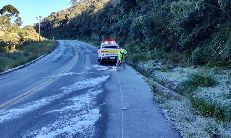 Segundo a Polícia Militar Rodoviária (PMRv), o frio deixou partes da SC-112, no Morro das Torres, congelada. Para solucionar o problema, os policiais passaram a manhã colocando sal na pista para derreter o gelo. Ao todo, foram 220 quilos de sal usados.