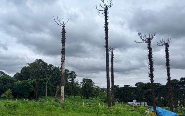 Um homem apontado por envenenar nove araucárias, espécie ameaçada de extinção, em Chapecó, no Oeste de Santa Catarina, terá que plantar novas árvores no mesmo terreno, informou a Polícia Militar Ambiental (PMA) na sexta-feira (10). Dono da propriedade foi multado em R$ 7,5 mil.