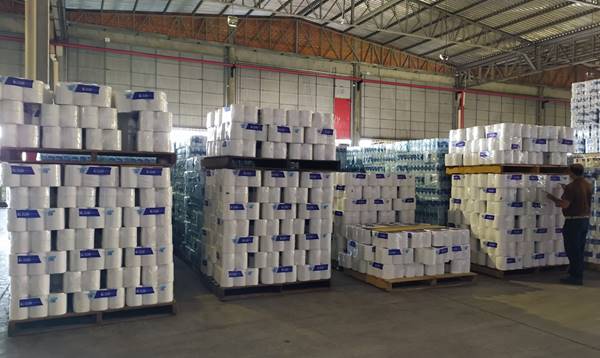 A carga percorreu 175 km em um dia e chegou ao município de Canoinhas, onde foi transformada em 1.280 fardos de papel higiênico da marca Fofinho e mais 200 fardos de Papel Toalha All Clean.