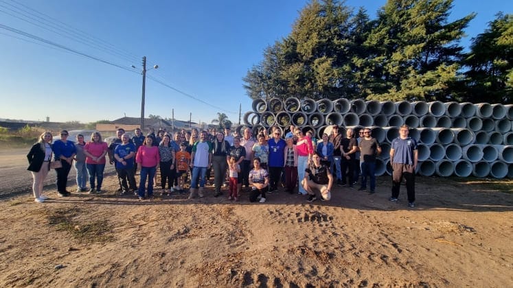A tubulação já está à beira da Avenida Julio Budant Neto, no Campo d’Água Verde, e o estaqueamento que balizará a obra de pavimentação da via foi realizado. “Nas próximas semanas vamos iniciar a drenagem”, garantiu a prefeita Juliana Maciel nesta quarta, 12 de junho, em ato realizado no local da obra.