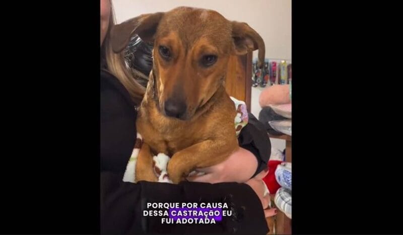 No vídeo, a cachorrinha Jade aparece recém saída de uma cirurgia de castração. Ela e uma colega, Moli, foram recolhidas na BR por trabalhadores que estavam fazendo o asfalto. Ambas foram castradas e já adotadas.