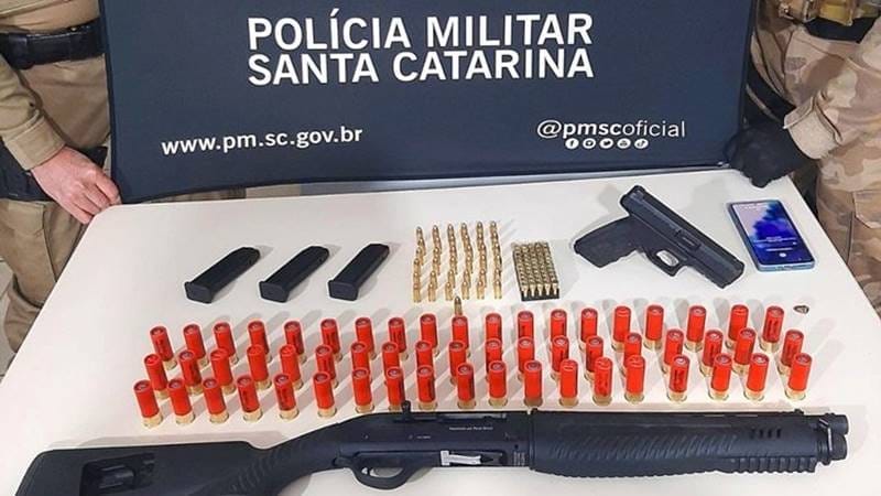 Ao chegar ao local, a guarnição encontrou o portão aberto e, após insistência, fez contato com o homem. Durante buscas na residência, que ficava aos fundos da empresa, foram encontradas uma pistola calibre 9 mm carregada, dois carregadores, uma carabina calibre 12 de fabricação estrangeira e diversas munições, totalizando 87 de calibre 9 mm e 57 de calibre 12.