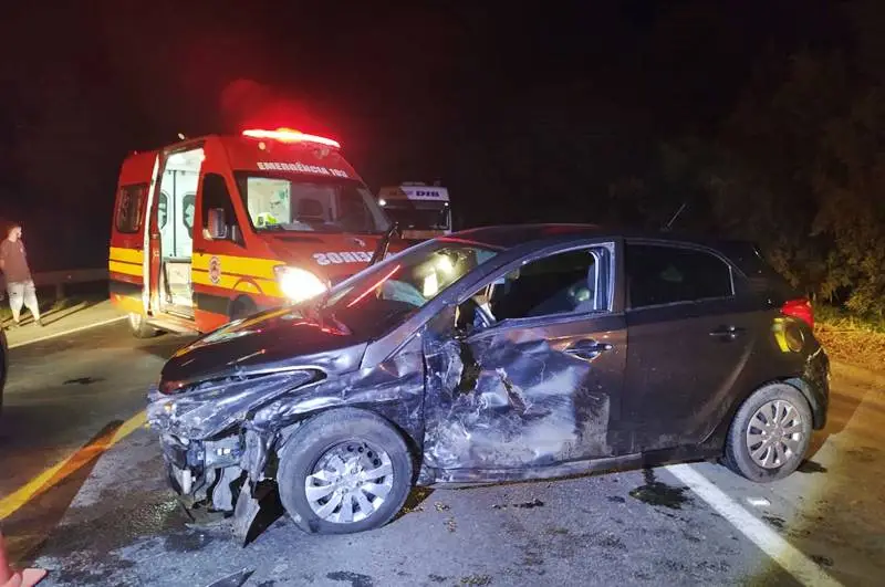 Já no HB20, duas mulheres foram vítimas do acidente. A condutora, de 40 anos, relatou dores nos arcos costais e um pequeno ferimento no rosto.