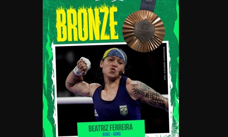 Em um combate parelho, decidido apenas no terceiro round, a brasileira Bia Ferreira foi derrotada pela irlandesa Kelllie Harrington por decisão dividida na semifinal do peso-leve (até 60 quilos) do torneio de boxe feminino dos Jogos Olímpicos de Paris (França), na tarde deste sábado (3), e garantiu a medalha de bronze.