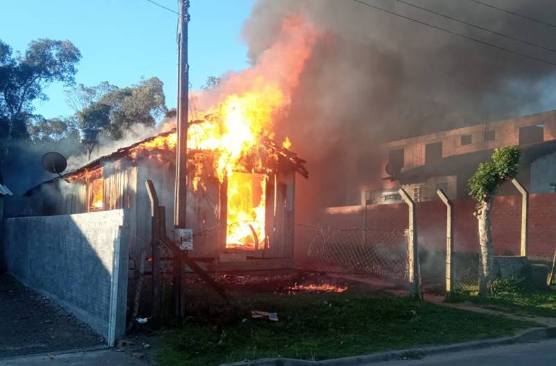 Um incêndio de grandes proporções destruiu uma casa na rua José Odelli, bairro Bom Jesus, em Itaiópolis, na tarde de segunda-feira (12). O Corpo de Bombeiros Voluntários foi acionado por volta das 17h e, ao chegar ao local, se deparou com as chamas já consumindo toda a residência.