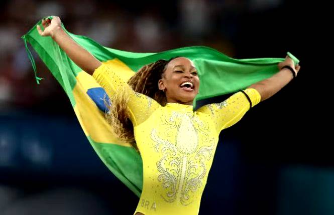 Rebeca Andrade iluminou a Bercy Arena, em Paris, nesta quinta-feira, com o brilho de sua quarta medalha olímpica e mostrou que a prata pode, sim, reluzir tanto quanto o ouro.