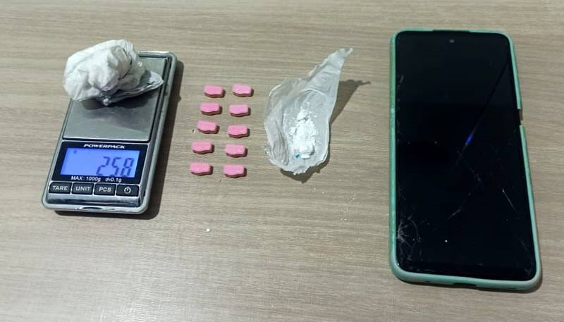 Uma busca mais minuciosa no interior do veículo resultou na apreensão de mais 25,8 gramas de cocaína e 10 comprimidos de ecstasy. Diante dos fatos, o homem foi preso em flagrante por tráfico de drogas.