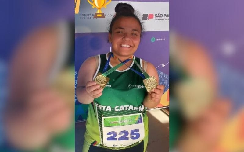 A estudante Júlia Alves Machado foi diagnosticada com nanismo aos 8 meses de vida. Natural de Canoinhas, no Planalto Norte catarinense, ela nunca havia tido contato com nenhum esporte até se mudar para São Pedro de Alcântara em 2022. Lá, na Escola Estadual Gama Rosa, Júlia conheceu a professora de educação física Hermínia Simone Carvalho, que a apresentou o paratletismo.