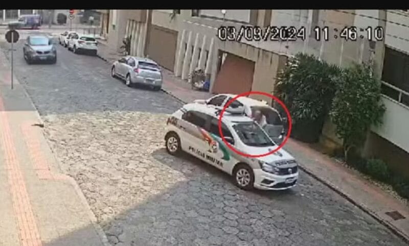 O agressor também teria dado coronhadas no PM e no automóvel. O homem tentou fugir, porém foi detido na mesma rua da ocorrência.