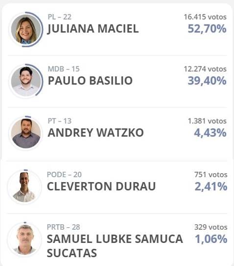 O percentual confirma o resultado das pesquisas divulgadas, que colocavam Juliana à frente na intenção de voto dos canoinheses.