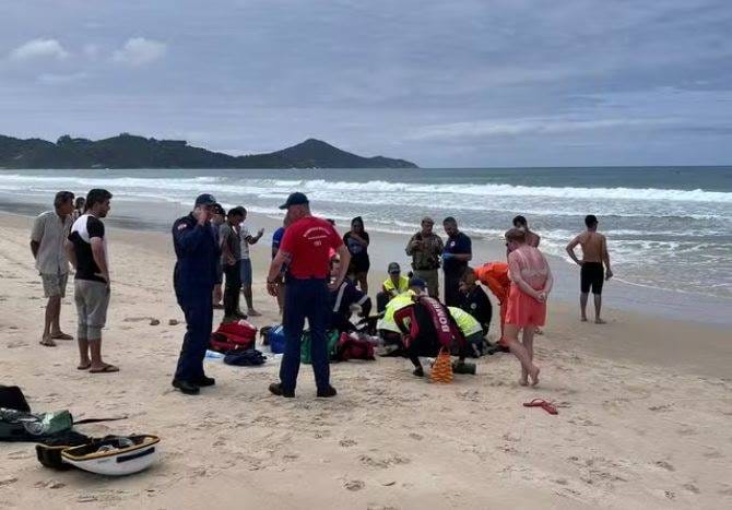 O chamado de emergência ocorreu por volta do meio-dia. Quando os bombeiros chegaram à praia, o pai já estava sendo atendido na areia pelo Serviço de Atendimento Móvel de Urgência (SAMU) e por guarda-vidas.