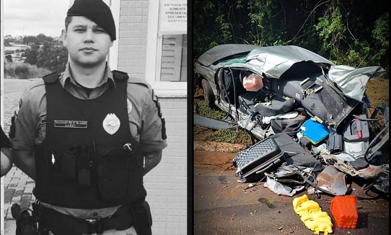 Segundo os bombeiros, o policial tentou ultrapassar uma caminhonete pela terceira faixa, bateu na traseira e rodopiou na pista. Em seguida, o veículo bateu no caminhão, que vinha no sentido contrário. O carro do PM foi lançado para um barranco.