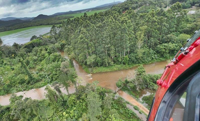 A Defesa Civil de Santa Catarina está monitorando os impactos das chuvas intensas em várias regiões do estado. Em Palhoça, no dia 4, uma ocorrência mobilizou o Corpo de Bombeiros Militar de Santa Catarina para o resgate de três pessoas ilhadas sobre o teto de um veículo na região da Passagem do Maciambu.