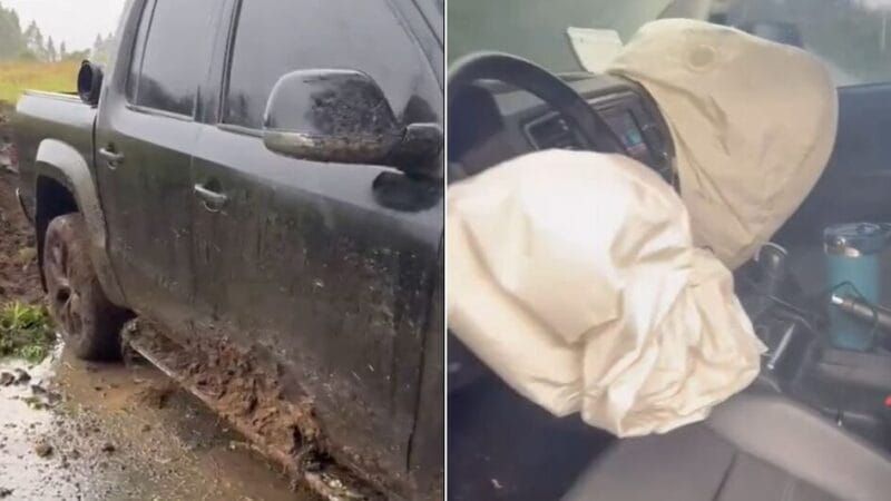 Segundo a postagem, o veículo perdeu o controle na pista devido à forte chuva que atingia a região no momento.