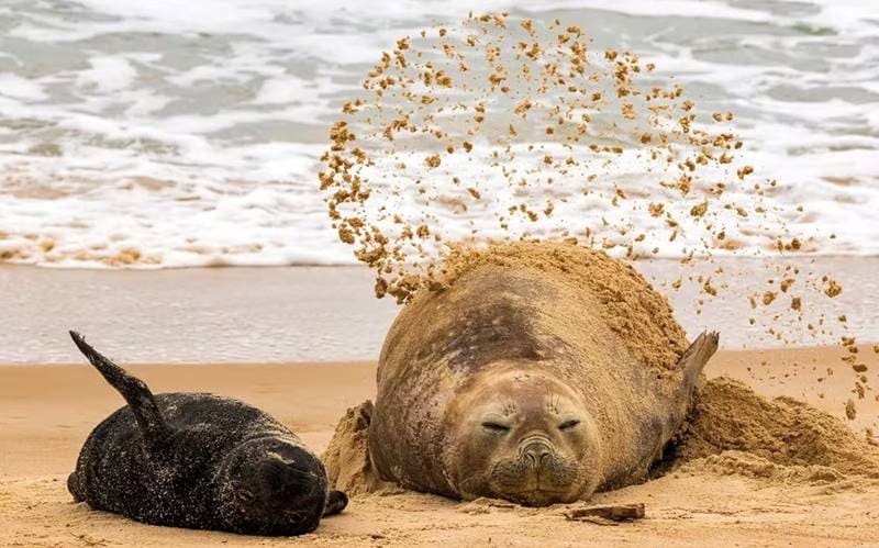 Um filhote de elefante-marinho-do-sul nascido em Santa Catarina e a mãe dele foram registrados na praia de Garopaba, no Sul de Santa Catarina. É a primeira vez que uma fêmea da espécie dá à luz no litoral do Brasil.