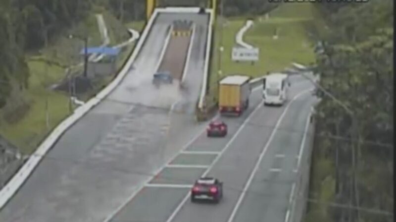 A primeira ocorrência foi na tarde de sexta (13), às 15h49min. Imagens registraram a entrada do caminhão na área de escape situada do Km 667,3 da BR-376, em Guaratuba (PR), pista sentido Santa Catarina. Segundo a concessionária Arteris, o condutor do caminhão usou o dispositivo após verificar uma falha nos freios.