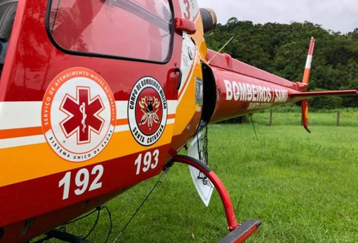 O pedido de socorro foi feito por telefone aos bombeiros voluntários de Ilhota. Diante da gravidade da situação e da distância até o batalhão, foi acionada a aeronave Arcanjo-03, que chegou ao local pouco depois das 13h. Quando a equipe de resgate chegou, o bebê estava agitado, chorando e apresentava vômitos.