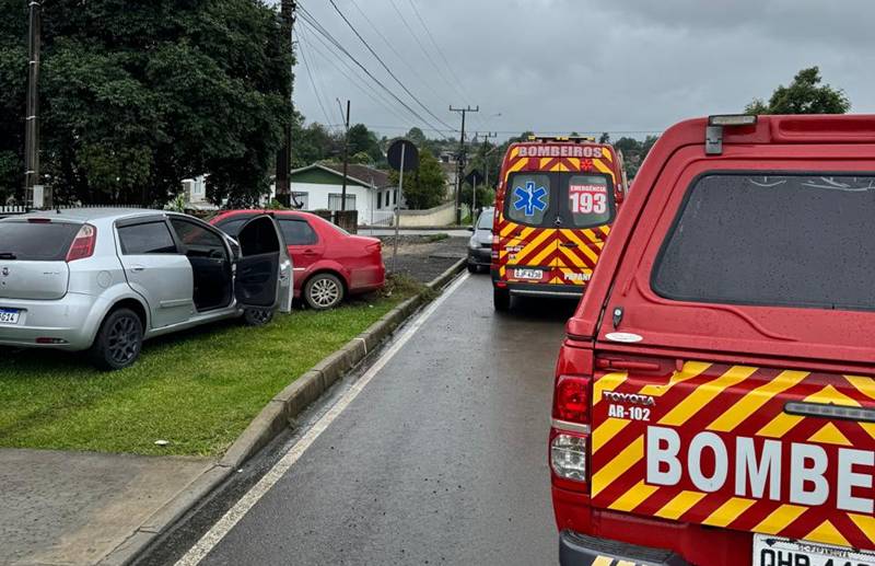 Uma colisão entre dois automóveis deixou um homem ferido na tarde deste sábado (14), na Rua Nereu Ramos, bairro Hospital, em Papanduva.
