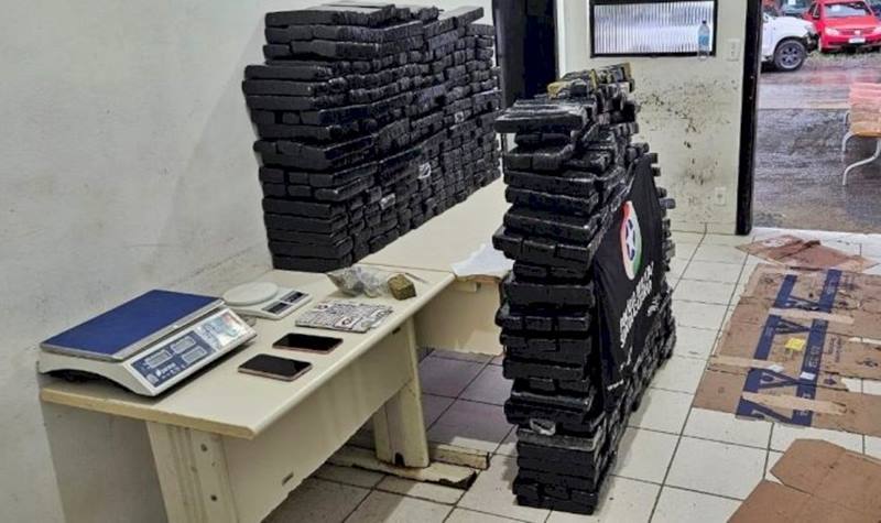 No cômodo, os policiais encontraram 588 tabletes de maconha, além de balanças de precisão e um caderno com anotações relacionadas ao tráfico. A mulher, de 34 anos, admitiu que o casal recebia R$ 3.500 para armazenar os entorpecentes e que as orientações sobre a movimentação da droga eram feitas por telefone, os quais também foram apreendidos.