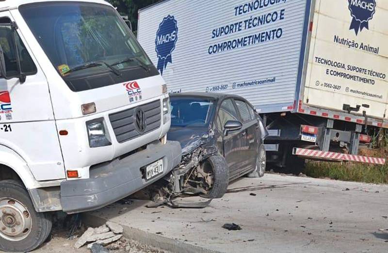 Ao chegarem ao local, os socorristas se depararam com uma colisão envolvendo sete veículos: quatro carros e três caminhões.