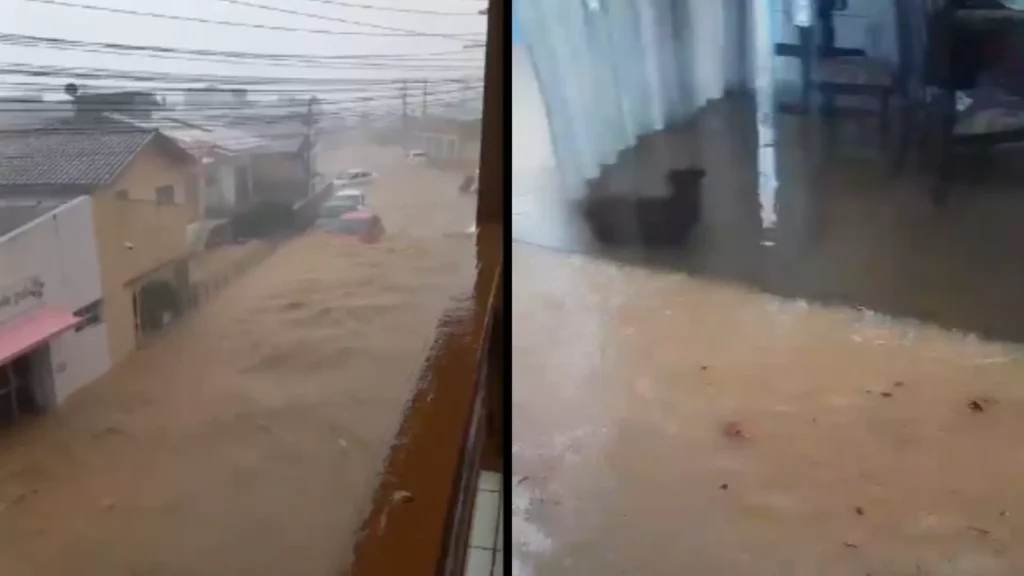 Uma chuva torrencial na madrugada e manhã desta quinta-feira (16), em cidades do Litoral Norte de Santa Catarina alagou ruas, deixou moradores desabrigados e afetou diversos setores das cidades de Balneário Camboriú, Governador Celso Ramos, Itapema e Camboriú.