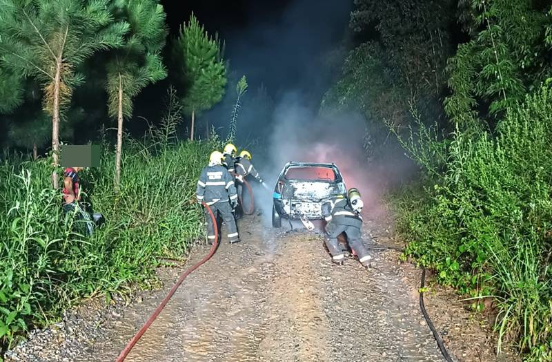 Na noite de sábado (12), por volta das 21h30, a guarnição do caminhão ABTR do Corpo de Bombeiros foi acionada para combater um incêndio em veículo na SC-303, no km 6, próximo ao Clube de Caça e Tiro, em Três Barras.