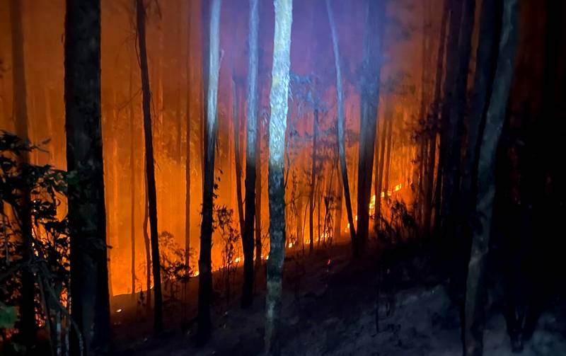 A linha de fogo chegou a atingir cerca de 4 quilômetros de extensão, com as chamas se deslocando do topo do morro para a parte inferior.