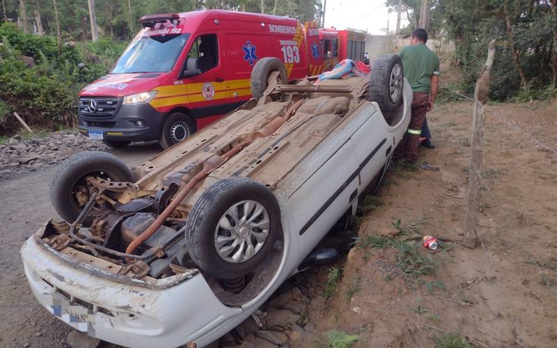 Um acidente de trânsito deixou duas pessoas feridas no fim da tarde desta segunda-feira (6), em Porto União. Por volta das 18h40, os Bombeiros Militares foram acionados para atender uma ocorrência de capotamento na Rua Secondo Eleseo Bertoluzi, bairro Bela Vista.