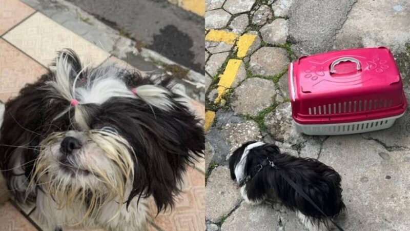 A PM foi chamada por volta das 10h após denúncias de que um animal estaria preso dentro de um carro. Segundo a corporação, o cachorro estava dentro de uma caixa de transporte, no banco do veículo.