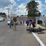 O condutor da moto foi encontrado consciente e orientado, mas com sinais vitais alterados. Ele já estava sem capacete e sentado na calçada, amparado por populares. O motociclista apresentava escoriações com hematoma na perna e escoriações nos pés, causados pela queda ou pelo impacto da colisão.