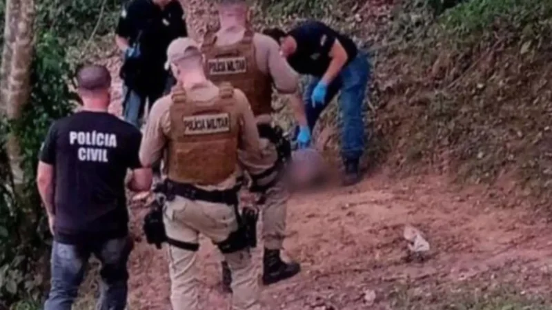 De acordo com a Polícia Civil (PCSC), o corpo foi encontrado em uma área de mata, com rigidez cadavérica. O corpo estava de lado e apresentava uma grave lesão no rosto, possivelmente causada por disparo de arma de fogo, e com uma lesão na região da cabeça.