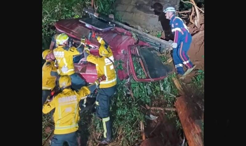 Dentro do veículo, três ocupantes, sem uso de cinto de segurança, estavam a bordo. O condutor, de 29 anos, e um menino de 10 anos não resistiram aos ferimentos e tiveram os óbitos confirmados no local. O ocupante que estava na posição do carona, um homem de 35 anos, foi encontrado e preso às ferragens.