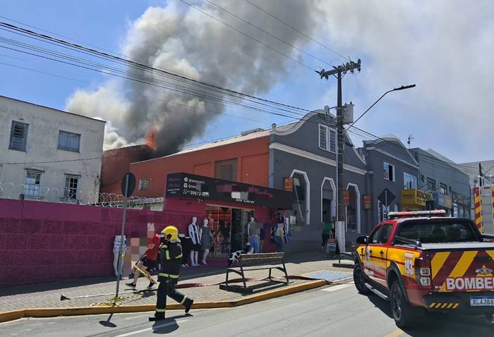 Na manhã desta quarta-feira (12), por volta das 10h30, um incêndio de grandes proporções atingiu um estabelecimento comercial no centro de Canoinhas, onde funciona uma livraria e cafeteria.