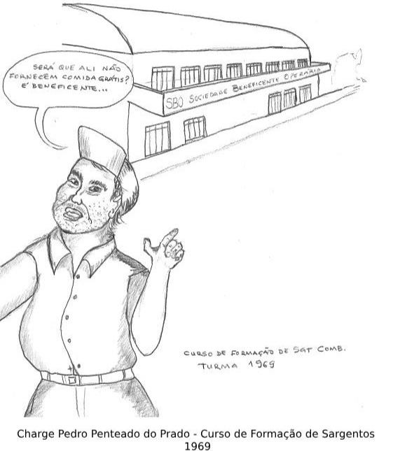 Na hora do almoço, entre uma etapa e outra do concurso, a turma foi dispensada e seguiu no sentido da área central de Canoinhas. O dinheiro era escasso e as dificuldades, grandes. Em frente à Sociedade Beneficente Operária (SBO), um dos colegas disse: “Será que ali não fornecem comida grátis? Afinal, é sociedade beneficente…”, o que ocasionou riso aos demais. Mais tarde, já durante o curso de formação, a anedota virou uma charge de autoria de Pedro, que é artista de grande talento.