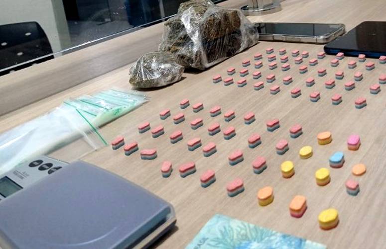 Durante as buscas no interior do imóvel, os policiais localizaram mais 39 comprimidos de ecstasy, cerca de meio quilo de maconha, uma balança de precisão e diversos recipientes plásticos utilizados para o embalo das drogas.