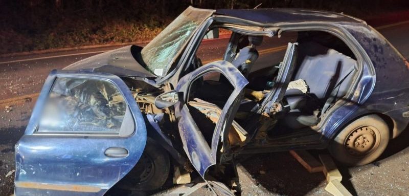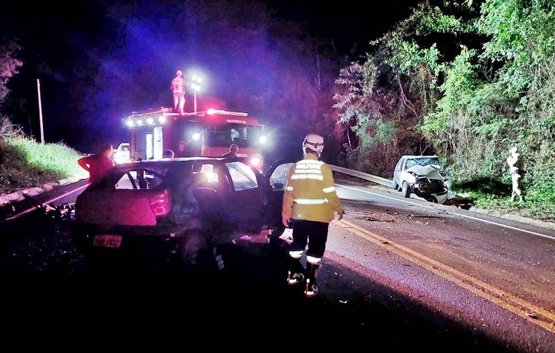 A colisão frontal aconteceu na madrugada deste domingo (2) no municípi de Formosa do Sul e envolveu um Fiat Palio, com placas de Blumenau, e um Ford Fiesta, emplacado em Chapecó.