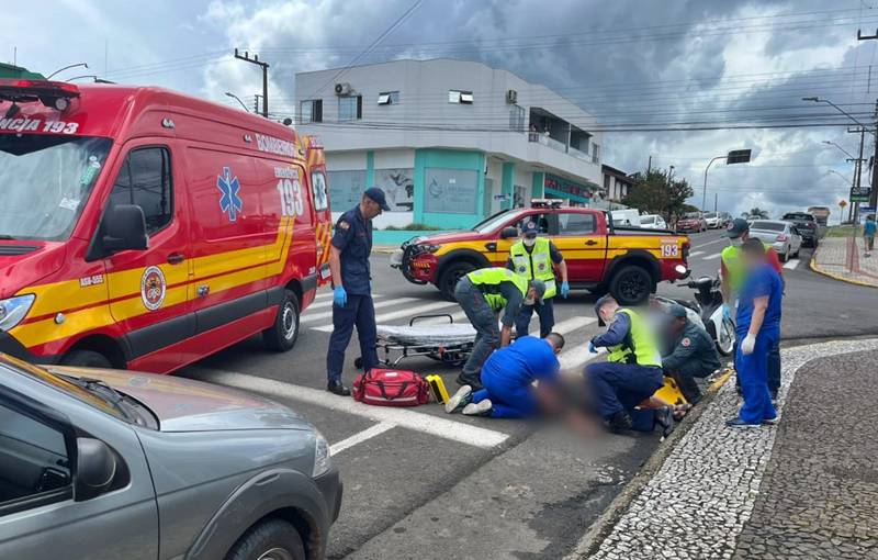 A condutora da motocicleta foi socorrida pelo Corpo de Bombeiros e encaminhada ao Pronto Atendimento com dores no quadril, braço e ombro direito. O acidente ocorreu quando o veículo envolvido cruzou a via sem perceber a aproximação da motocicleta, que acabou colidindo na parte frontal do automóvel. O boletim de ocorrência foi registrado, e as partes foram orientadas.