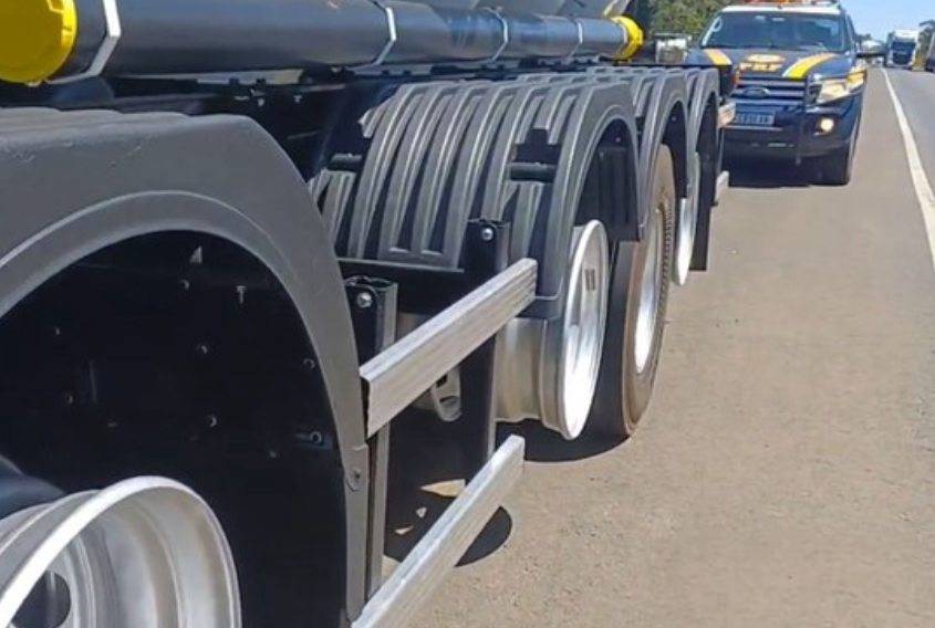 O semirreboque novo, que será utilizado para transporte de combustíveis, estava transitando com pneus em apenas um dos quatro eixos. O caso aconteceu na segunda-feira (3), mas foi divulgado apenas nesta quarta (5) pela Polícia Rodoviária Federal (PRF).